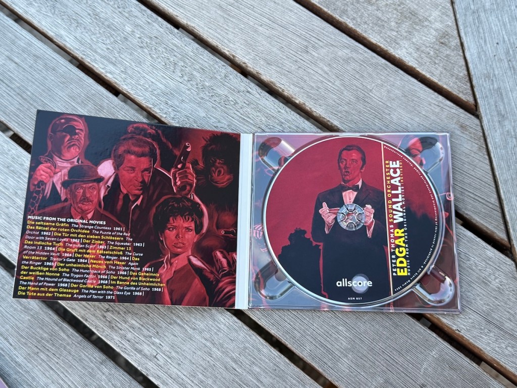 Der leider verstorbene Peter Thomas war der Hauskomponist der Rialto-Filme, die mich als Kind faszinierten und mich heute weitgehend amüsieren. Ich hab mir die Komplettbox der Filme angeschafft. Und nun veröffentlicht das kleine, spezialisierte Label Allcore diesen musikalischen Leckerbissen auf CD und Vinyl. Dietmar Bosch hat mir eine Vorab-CD zugeschickt, nachdem die limitierte Special Edition auf rotem Vinyl geordert habe, die in den nächsten Tagen veröffentlicht wird.