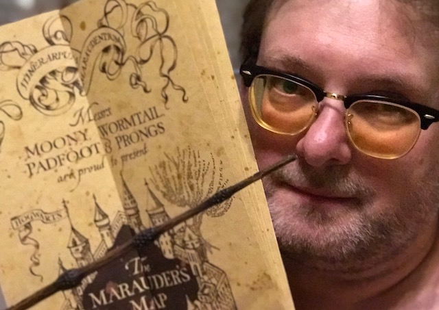 Mit Zauberstab und der Karte des Herumtreibers ausgestattet.