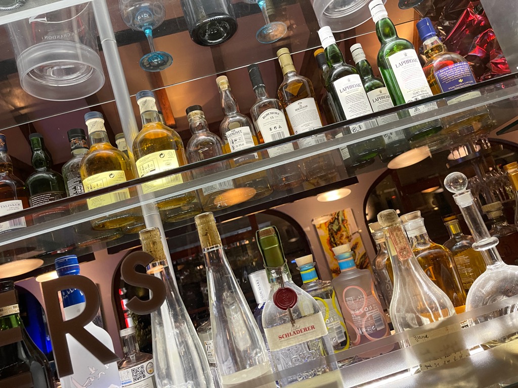 Die Röstaromen von Irish Hereford, Wagyu, Black Angus oder US Beef genieße ich durch die ganzheitlich offene Architektur: direkt vor den Augen der Gäste gart das in eigenen Dry-Aging-Kühlschränken gereifte Grillgut immer á point. Den dazugehörigen Tropfen liefert die Bar-Lounge, dort entdeckte ich meine schottischen Freunde.
