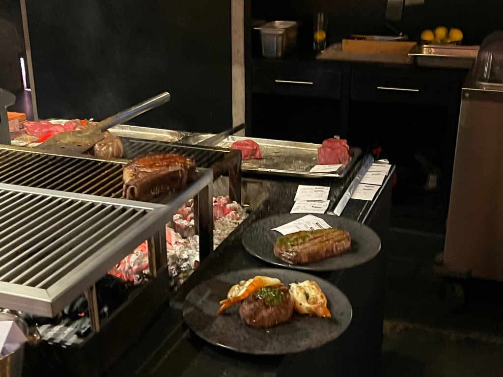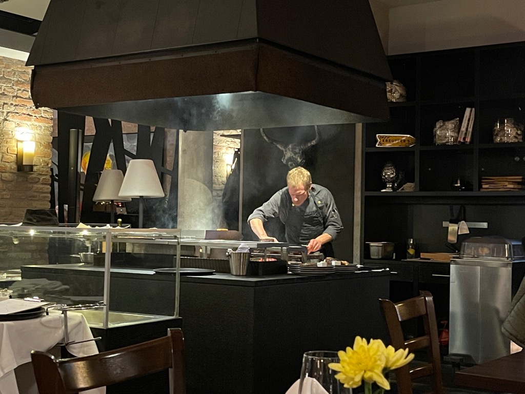 Der Service war sehr aufmerksam und wir nahmen Platz in der Nähe des offenen Holzofengrills.