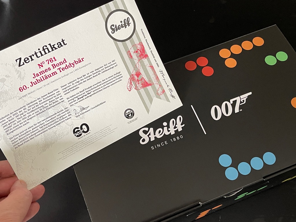 Dieses Jahr feiern wir 60 Jahre James Bond. 1962 kam Dr. No in die Kinos und seitdem sind 25 offizielle Bond-Filme und ein paar weitere nichtoffizielle erschienen. Und zum 60. Geburtstag hat sich Steiff einen speziellen James Bond-Bär einfallen lassen.
