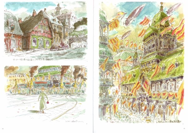 Das Buch „The Art of Howl’s Moving Castle“ ist ein optischer Leckerbissen. Es enthält Skizzen, Storyboards und fertige Filmbilder. Die japanischen Anweisungen wurden – Gottlob – ins Englische übersetzt. Anders als klassische Art of-Bücher gibt es ausführliche Texte, wie die einzelnen Szenen produziert wurde. Die Künstler verraten, welche Techniken und warum sie eingesetzt wurden. Animation oder CG, welche Werkzeuge für die Hintergründe wurden geschaffen – das Buch verrät kleine und große Geheimnisse der Optisch Großartiges ist in dem Buch herausgekommen. Ein Bilderbuch für die Sinne. Und was mir besonders gefällt, die Welt der Geschichte wurde der Optik elsässischer Städte und Landschaften nachempfunden. Es ist der Hammer, wie Asiaten unsere Architektur und Kultur sehen. Hier bekommen wir von einem Japaner einen animierten Spiegel vorgehalten. Auch mal sehr heilsam.