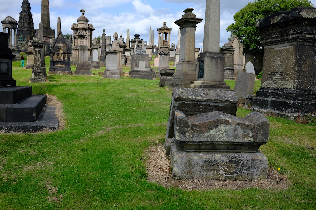 Im Glasgow Necropolis gibt es keine offiziell ausgewiesenen Bereiche, die ausschließlich für bestimmte Gruppen oder besonders viele Tote reserviert sind, wie man das von manchen Friedhöfen mit klar getrennten Sektionen kennt. Der gesamte Friedhof ist ein weitläufiges Gelände mit zahlreichen Grabstätten und Monumenten, die sich über die Hügel und Wege verteilen. Die meisten Gräber sind also anonym oder nur durch kleine, schlichte Markierungen sichtbar.