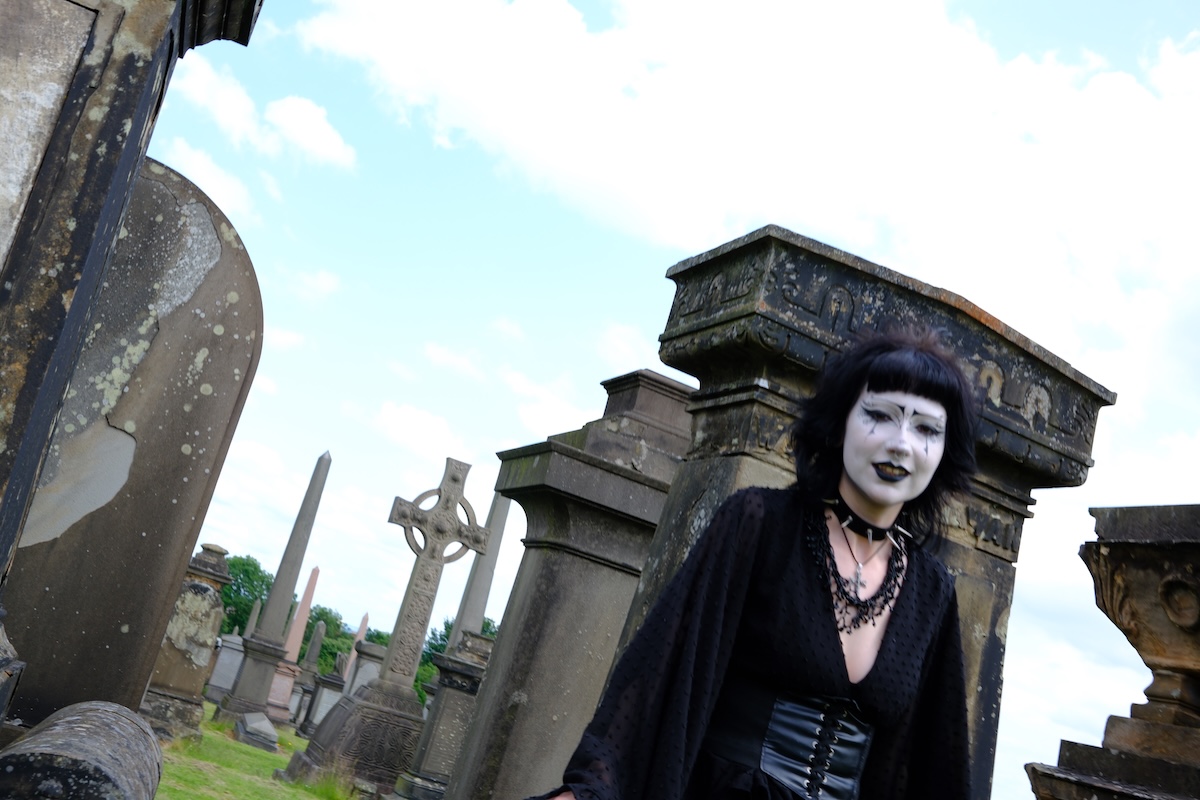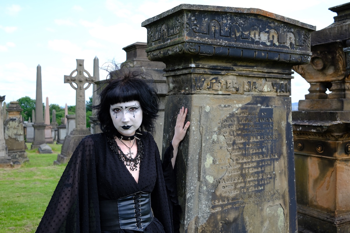 Der Glasgow Necropolis übt auf Gothic-Fans eine ganz besondere Faszination aus, da er wie kaum ein anderer Ort die Ästhetik, Symbolik und Atmosphäre der Gothic-Kultur widerspiegelt. Bei meinem Streifzug durch diesen faszinierenden Friedhof traf ich verschiedene Gothic-Fans, die die Atmosphäre für fotografische Aufnahmen nutzen.