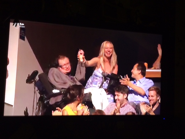 Damals führte so etwas zu massiven Protesten. Die Songs waren stark, vor allem natürlich Lumberjack, I Like Chinese, Philospher’s Song und das inspirierende Sit on my face. Sehr schön am Tag der Mondladung war der wunderschöne Milkyway-Song. Und bei der Anwesenheit von Stephen Hawking zeigt sich, welche Wirkung die Pythons heute noch in Großbritannien haben. Es gab eine Einspielung mit dem großen Physiker und Denker, der auch in der O2 Arena anwesend war.