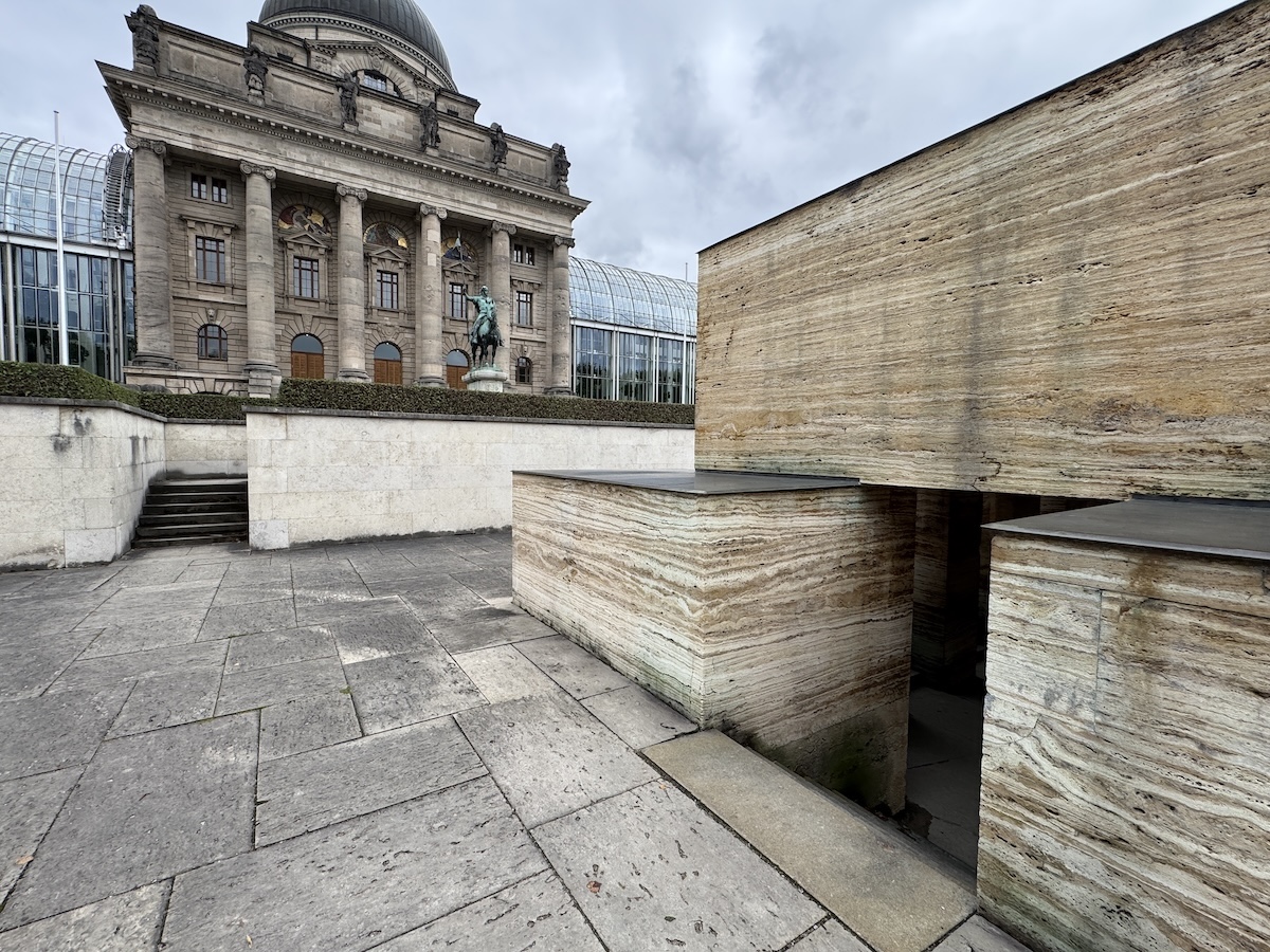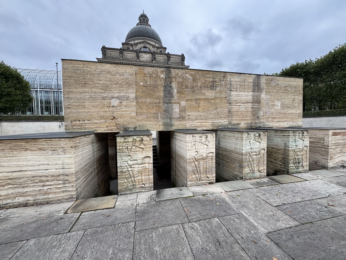 Irgendwie kennt es kaum ein Besucher meiner Geburtsstadt München, obwohl es eigentlich zentral liegt und eindrucksvoll ist.Das Kriegerdenkmal im Hofgarten in München liegt am östlichen, tiefer gelegenen Ende des Gartens direkt vor der Bayerischen Staatskanzlei und erinnert ursprünglich an die im Ersten Weltkrieg gefallenen Münchner. Die Masse der Besucher strömt in den Hofgarten und besucht den Pavillon, das Denkmal wird kaum besucht.