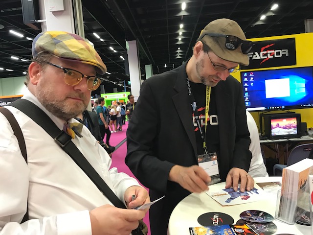 Für einen Tag ist Hülsbeck aus den USA auf der gamescom zu Gast, um alte Freunde zu treffen, neue Kontakte zu schließen und vor allem mit seinen Fans ins Gespräch zu kommen. Und da komme ich ins Rennen. Ich bin ein großer Fan des Komponisten und hatte ihn in der Vergangenheit immer wieder verpasst. Aber dieses Mal sollte ich ihn treffen. Chris Hülsbeck ist der deutsche Komponist für Videospielsoundtracks. Er komponierte zahlreiche Klassiker, sein Meisterwerk ist die Musik zur Videospielreihe Turrican. Die Musik wurde in zahlreichen Versionen veröffentlicht, unlängst als opulente Orchesterversion mit klassischen Sinfonieorchester. Also traf ich ihn auf der gamescom, ließ mir ein paar Autogramme geben und machte ein Videointerview mit ihm.