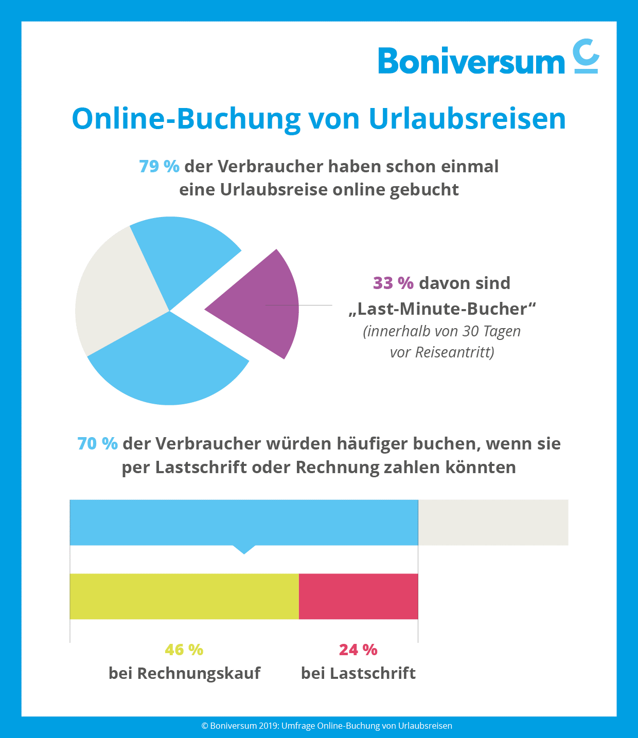 Die Vorliebe für traditionelle Bezahlmethoden birgt Potenzial für Mehrumsatz. Rund 70 Prozent würden ihre Urlaubsreisen häufiger online buchen, wenn sie die Bezahloptionen „Lastschrift“ oder „Kauf auf Rechnung“ wählen könnten.