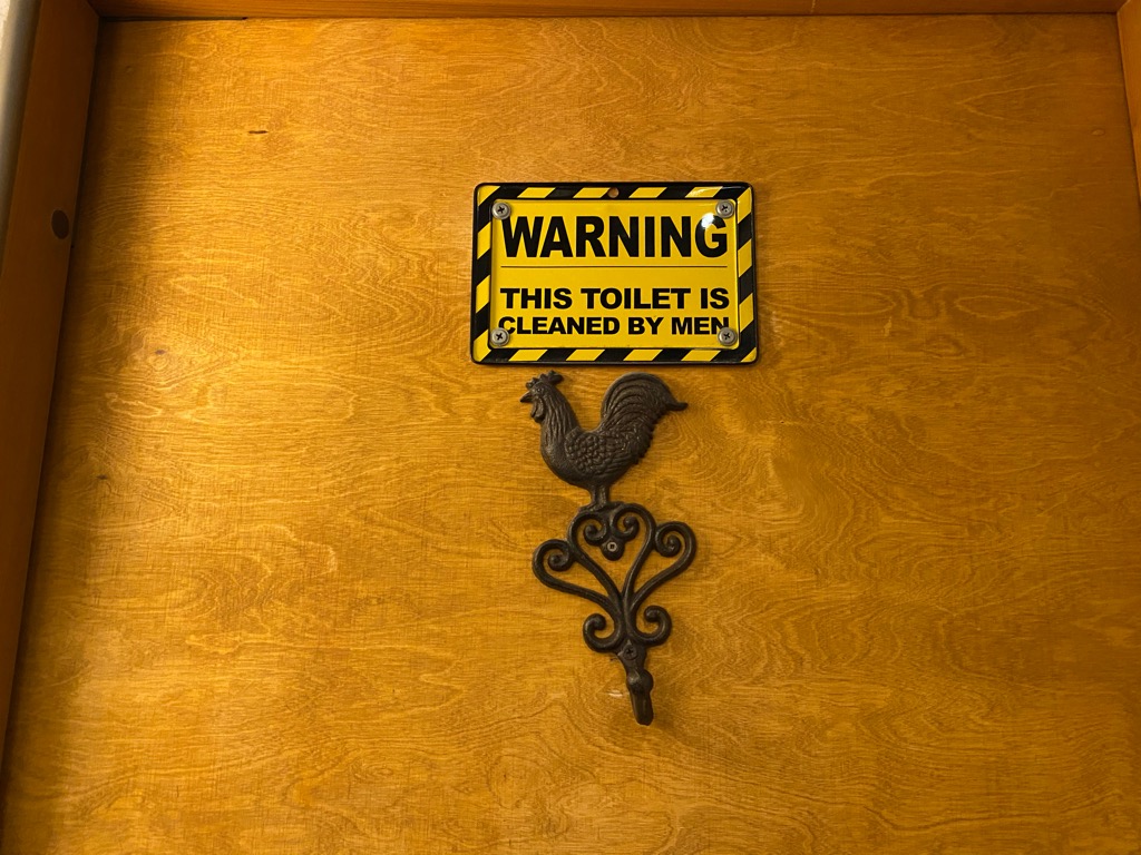 Im Zentrum des Weihnachtsmarktes steht eine große, geschmückte Tanne. Auf der Spitze ist ein Hahn angebracht. Der Hahn ist in Riga ein Tier, das man immer wieder im Straßenbild sieht. Ich habe sogar in einer Kneipe ein Bier getrunken, dass über 200 Hähne in allen Formen ausgestellt hat. Für meine Frau ein Fest, betreibt sie doch den Blog Hahnologie. Sogar auf der Unisex-Toilette gibt es ein Hinweisschild auf Hähne.