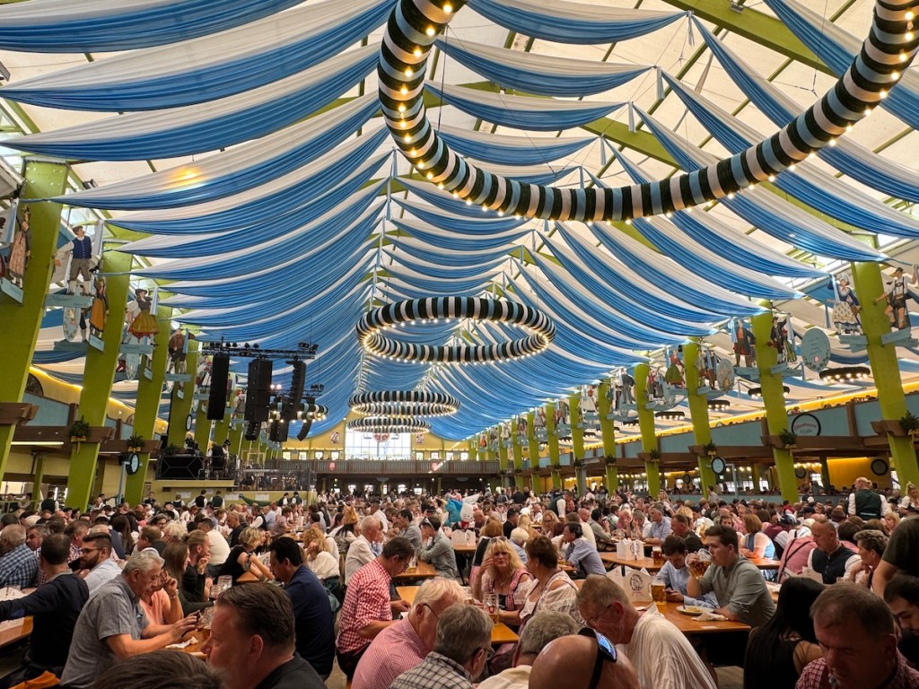 Die Maß Bier kostet mit bis zu 14,90 Euro soviel wie ein Kasten Bier im Supermarkt, wird aber dennoch gekauft. Neu sind auch vier Gratis-Trinkwasserstellen von den Stadtwerken auf der Wiesn, nachdem eine Maß Wasser mehr als zehn Euro kostete. Ich hab gesehen, dass es schon einen Run auf die 120.000 Sitzplätze auf der Wiesn gab. Da war ich froh bei der kda – Kirchlicher Dienst in der Arbeitswelt der Evang.-Luth. Kirche in Bayern einen gemütlichen Sitzplatz zu haben und die Versorgung war ausgezeichnet.
