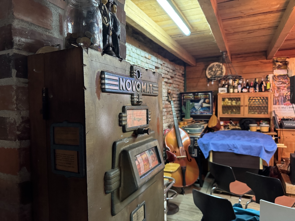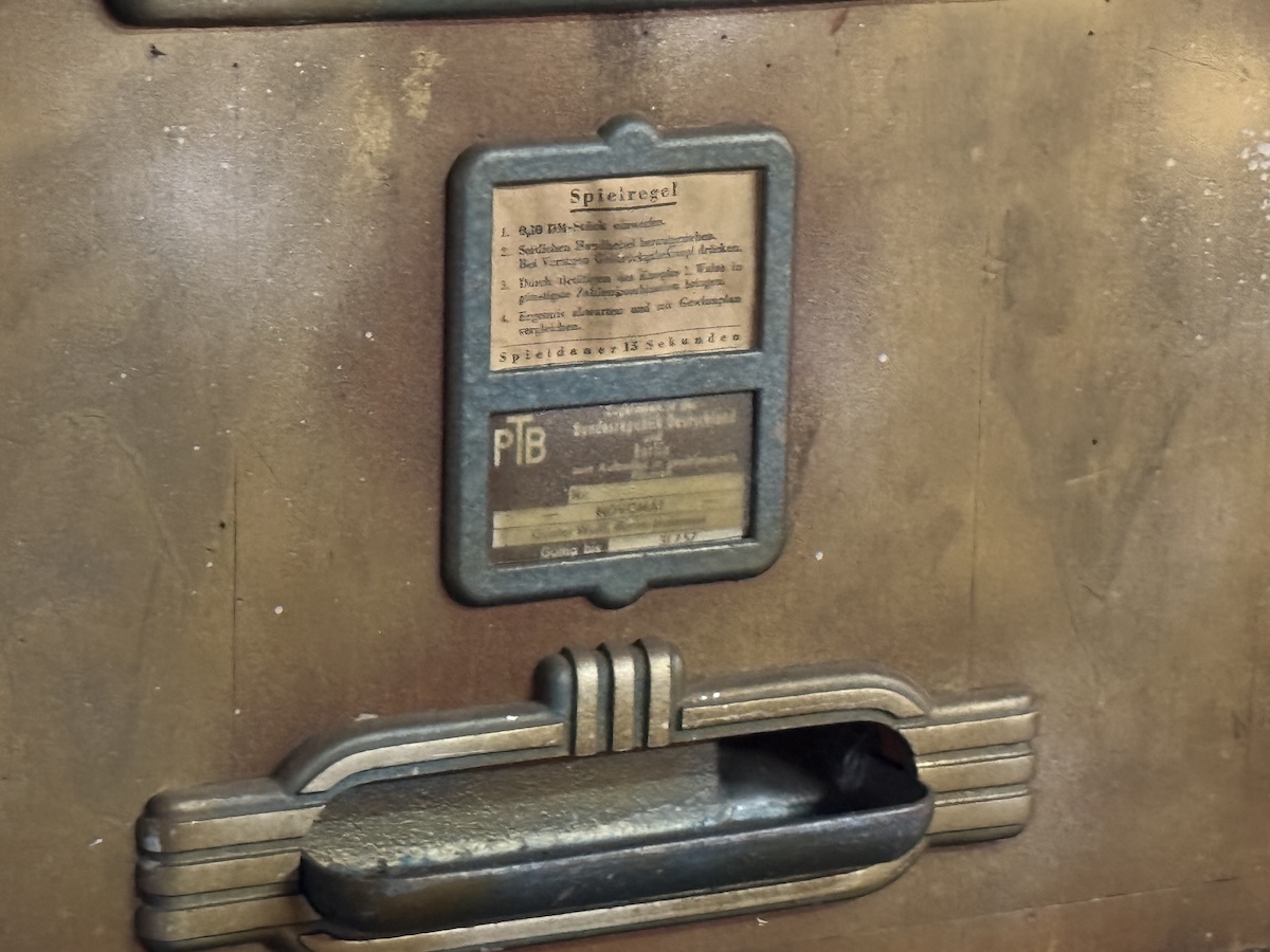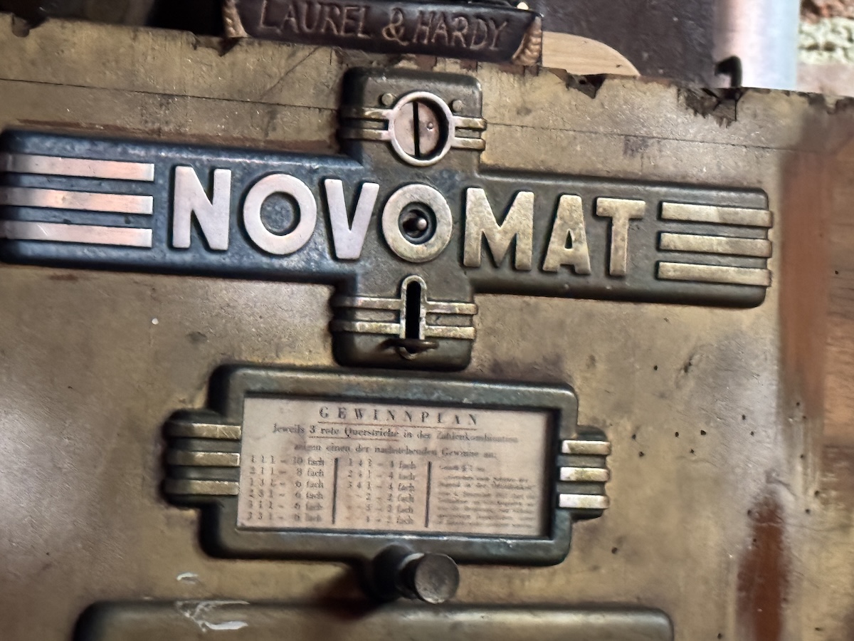 Ich bin kein großer Fan von Geldspielautomaten, aber als ich den Novomat bei einer Veranstaltung entdeckte, wurde ich schwach. Ein Novomat ist ein Stück Spielhallen-Geschichte – ein mechanischer Geldspielautomat aus der frühen Zeit der Firma Novomatic (die damals noch unter „Novo-Mat Apparatebau“ auftrat).
