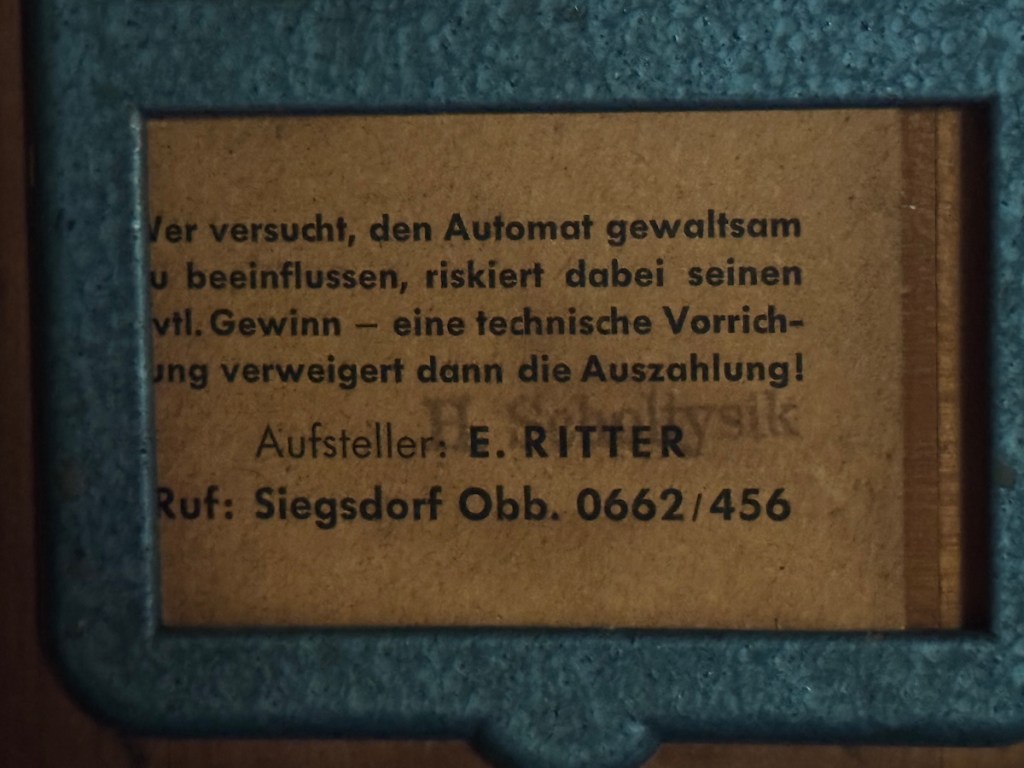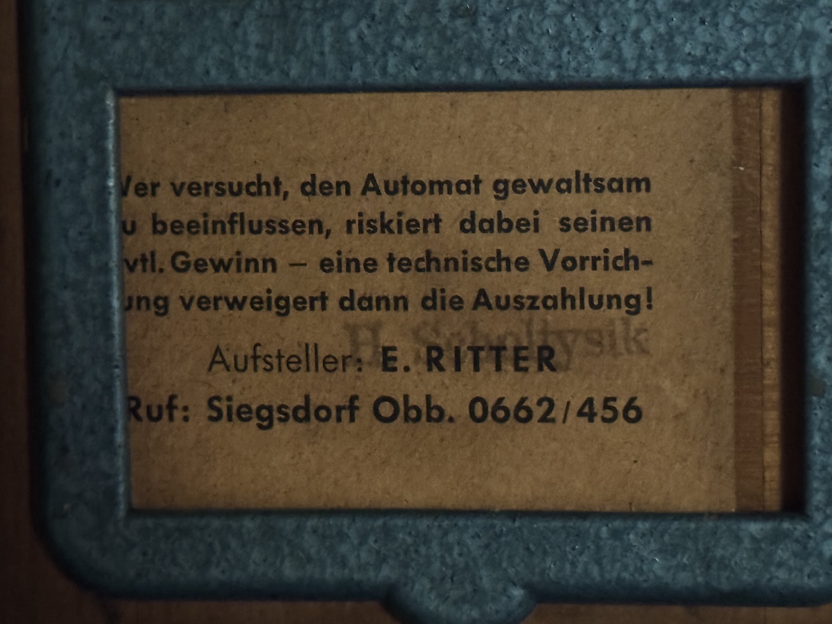 Solche Geräte gehörten zu den klassischen Unterhaltungsautomaten, wie man sie in Gaststätten, Kneipen oder kleinen Spielsalons der 1950er Jahre fand. Typisch für diese Geräte war noch die rein mechanische Technik – Zahnräder, Federn, Walzen und Hebel bestimmten das Spielgeschehen, Elektronik kam erst Jahre später dazu. Die Automaten waren laut, rasselten und klackerten beim Spielbetrieb – was zu ihrem besonderen Charme beitrug. Der Spieler warf Münzen ein (z. B. 10 Pfennig oder 1 DM), zog an einem Hebel oder drückte einen Startknopf. Die Mechanik setzte dann Walzen, Scheiben oder Zeiger in Bewegung.