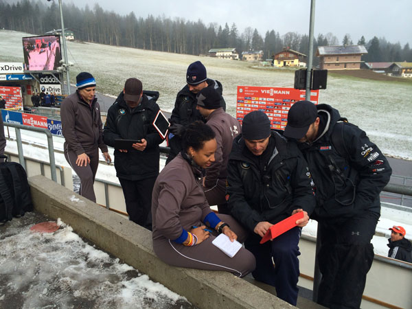 Die Mannschafts-Trainer nutzen das iPad und Ubersense Coach, um sowohl im Training als auch im Wettkampf die Leistung eines Athleten der Disziplinen Zweierbob, Viererbob und Skeleton an verschiedenen Stellen der Rennstrecke aufzunehmen, zu analysieren und zu manipulieren. Um dem Team ein direktes Feedback geben zu können, werden die Videoaufnahmen im Anschluss gleichzeitig an alle Trainer gepusht.